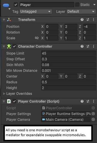 This is a demo for the "Modular Player Controller" asset — a scalable foundation for player controller systems, not genre-dependent.